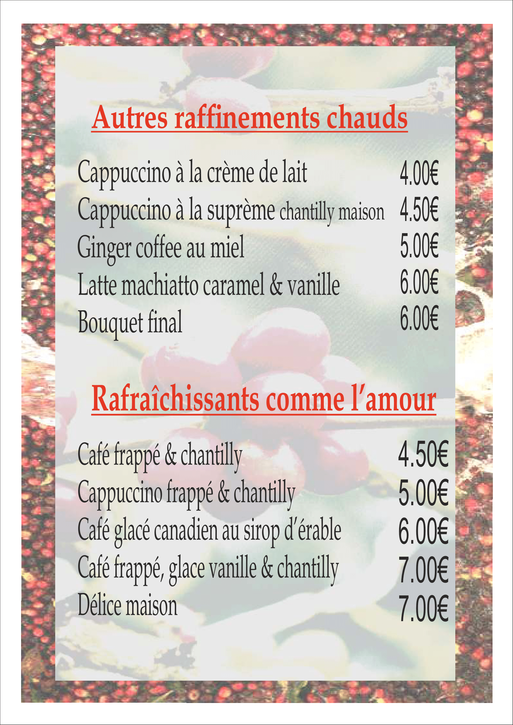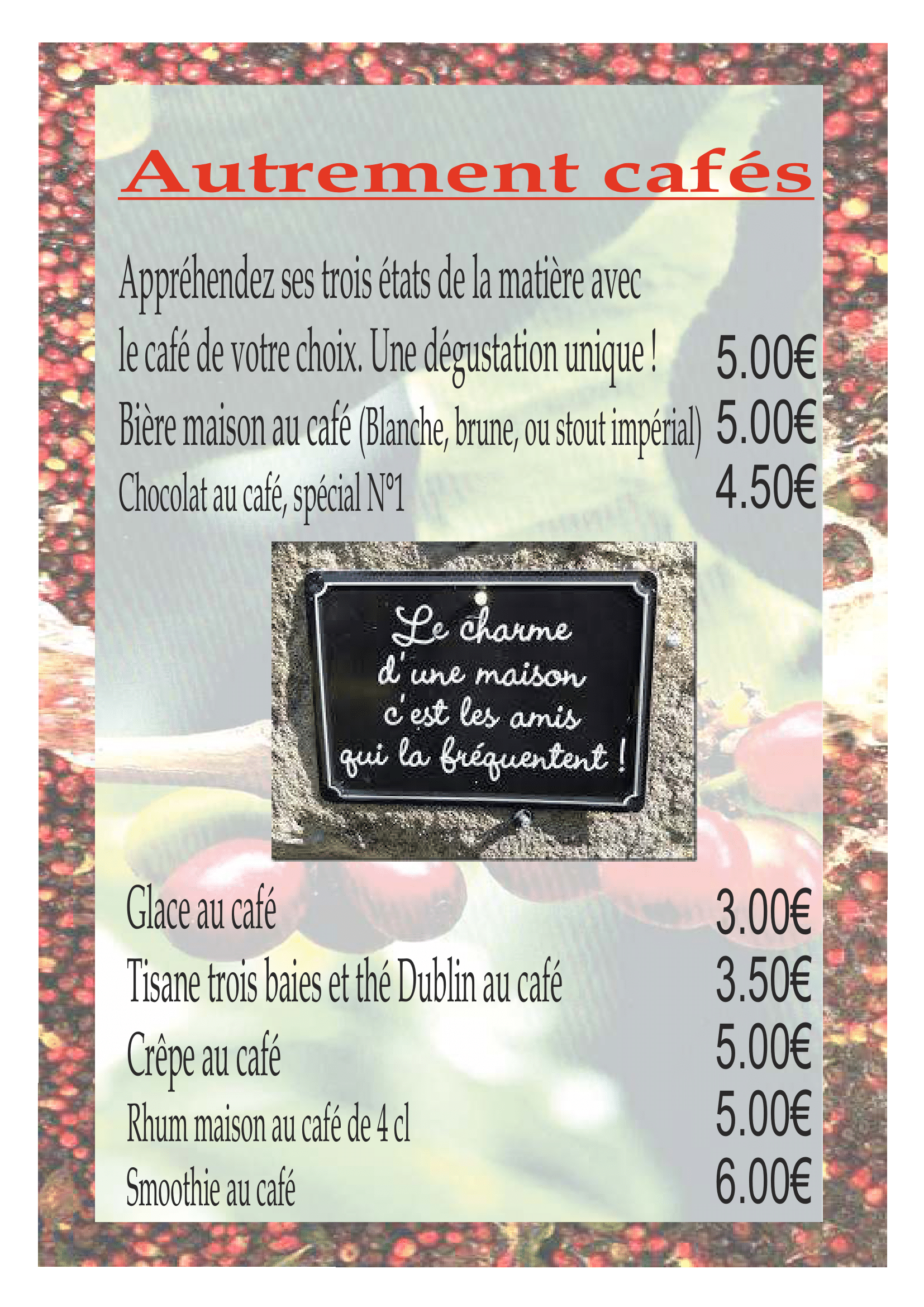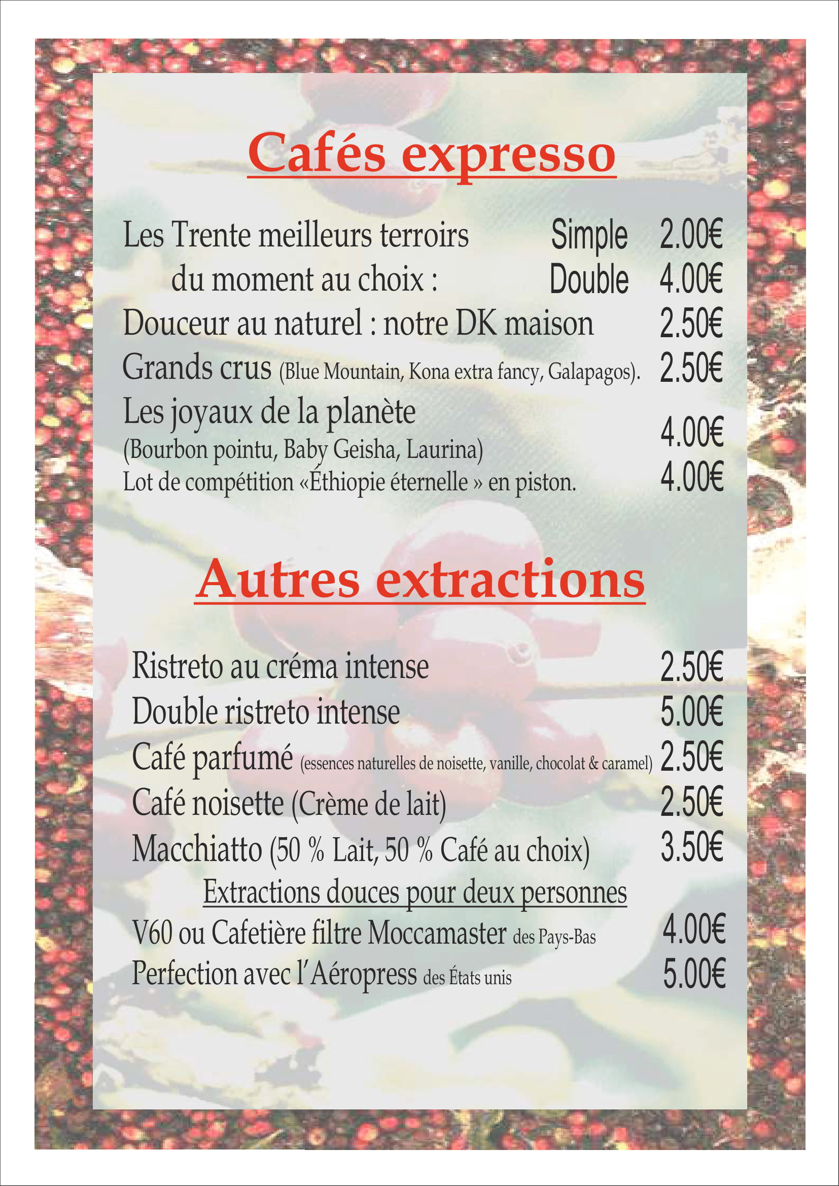 Carte des cafés